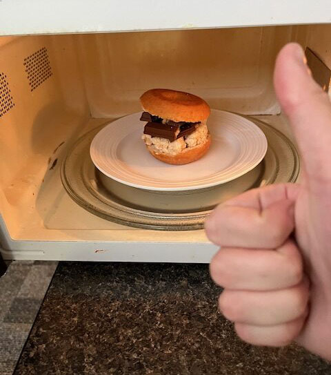 So you’re probably wondering what the absolute hell this is right!?! Well it’s a desert that I came up with back in high school as a way to sneakily have multiple candies and junk food types at once. But over the years my family has found it not only extremely funny, but tasty too, so we decided to make it a family recipe and give it a name that would only be spoken of in legend…THE ABOMINATION. Now I should mention that this is what I call the recipe, because I found the name funny, however my family has now dubbed this ” the loaded donut ” and it’s now a dessert where you just take a plain donut and load it with whatever sweet treat you want ( within reason obviously ) and then heat it up then dig in.